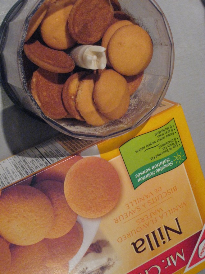 4 cups crushed vanilla wafers (Mr. Christie’s Nilla wafers work well, about 1 & 1/2 boxes)