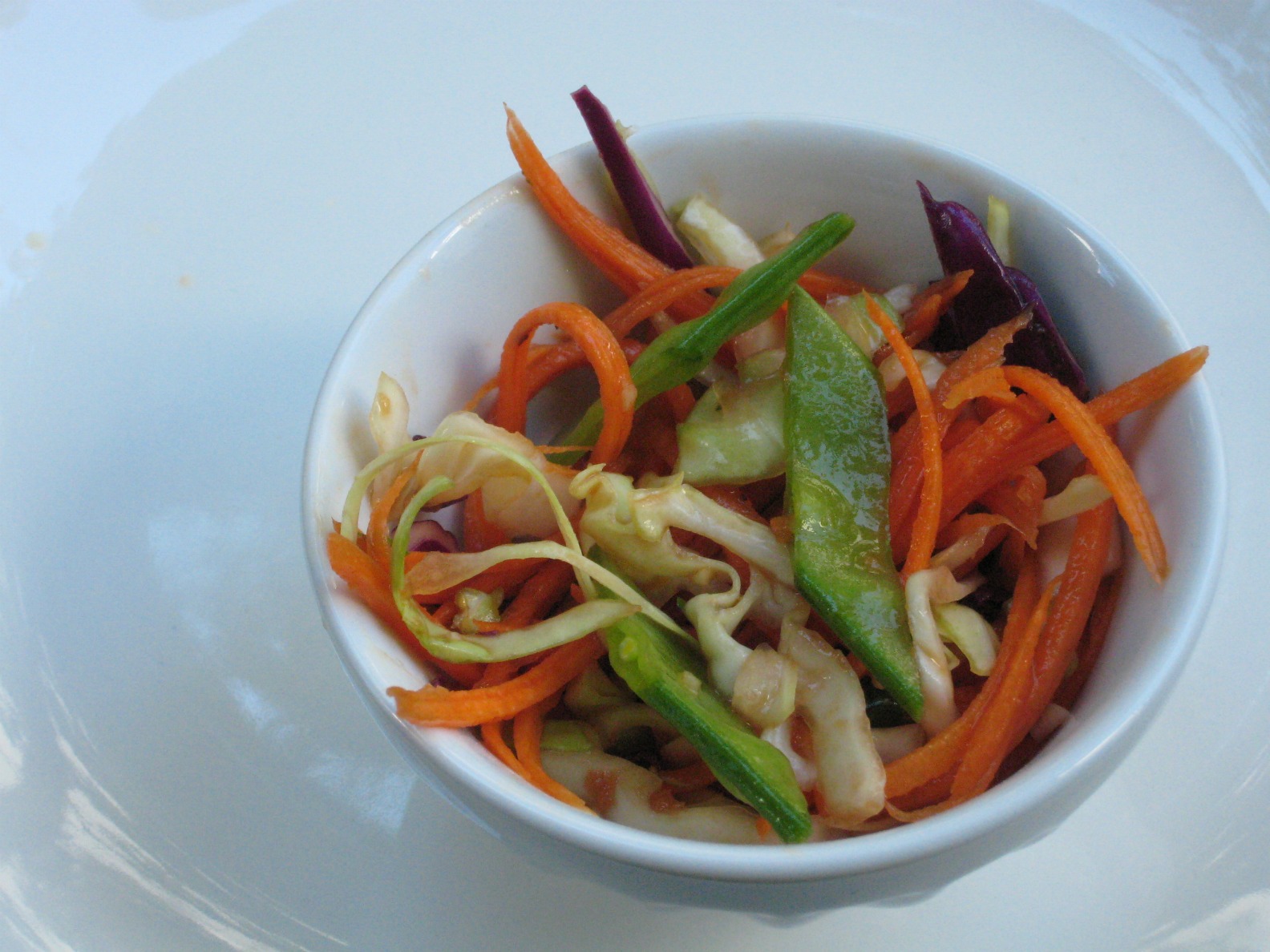 I found this recipe in Fast, Fresh and Green by Susie Middleton, and altered it slightly. The author calls the recipe kick-slaw because the ginger, lime and garlic give it a kick of flavour. I like the name because coleslaw sounds so boring. This recipe isn’t boring!