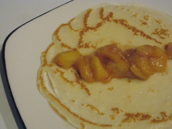 After we had our fill I cooked up the last of the batter, cooled the crepes, then placed them between sheets of plastic wrap, popped them into a baggie and stored them in the freezer to reheat and eat later.