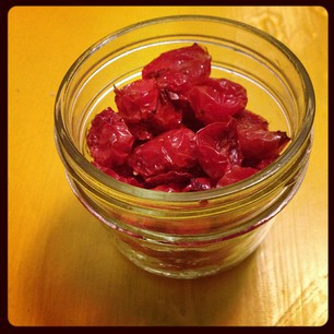 5. Let the tomatoes cool and then place them in a jar. Add olive oil to cover the tomatoes, and store the far in the fridge. The olive oil can be used for cooking foods like tomato sauces, and making salad dressing.