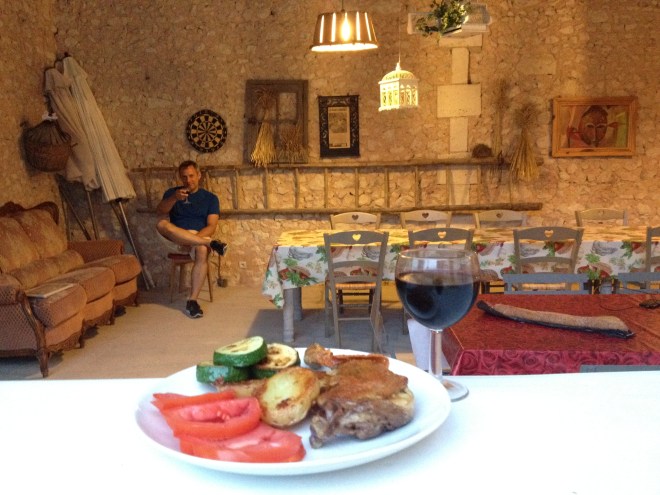3. Remove the legs from the pan and keep them in a warm oven. Remove some of the fat from the frying pan, then add the potatoes. Fry them until they are browned on each side. (If you want to make Perigord style potatoes, add some garlic and lots of parsley. We didn’t get to try this, but our B&B host told us it was amazing, so that is how I’ll try it next time).