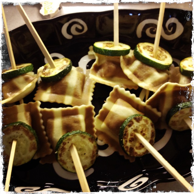 3. Cook the pasta, then skewer each ravioli along with one slice of cooked zucchini.