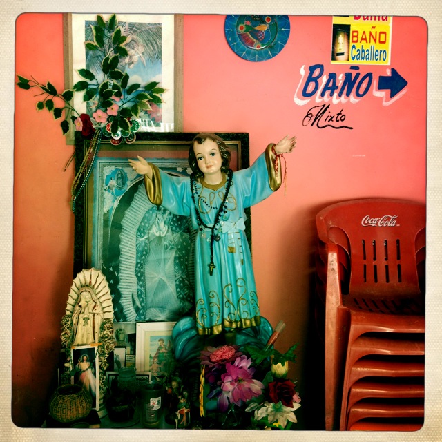 On my recent holiday in Mexico I saw and smelled this awesome barbecued chicken at roadside stands, but whenever we happened to be near one, it was around breakfast time and I really wasn’t in the mood for chicken. One day, shortly before we came home, I found this place called Polleria Alba just down the road from our apartment in Tulum. They’ve got a barbecue outside and then some tables inside and outside of a garage. I ordered chicken for one, and out came this huge portion – a whole chicken on one plate, and a platter of rice, pasta and salad on another, and some fresh tortillas. It was amazing, so I promised myself I’d learn to make it at home. I found a recipe on this site. It’s pretty easy to make, and surprisingly moist, even the breast. I served it with Mexican rice and beans, with various sauces. And Mexican beer, Negra Modelo, my fave.