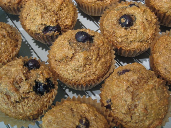 This tasty muffin recipe uses Omega 3-rich flax seeds, which are a great way to lower cholesterol. Plus they provide, along with the bran and blueberries, a great dose of fibre. And blueberries – besides being delicious, contain antioxidants and vitamin C. Did I mention these muffins also taste good – you can’t go wrong here!