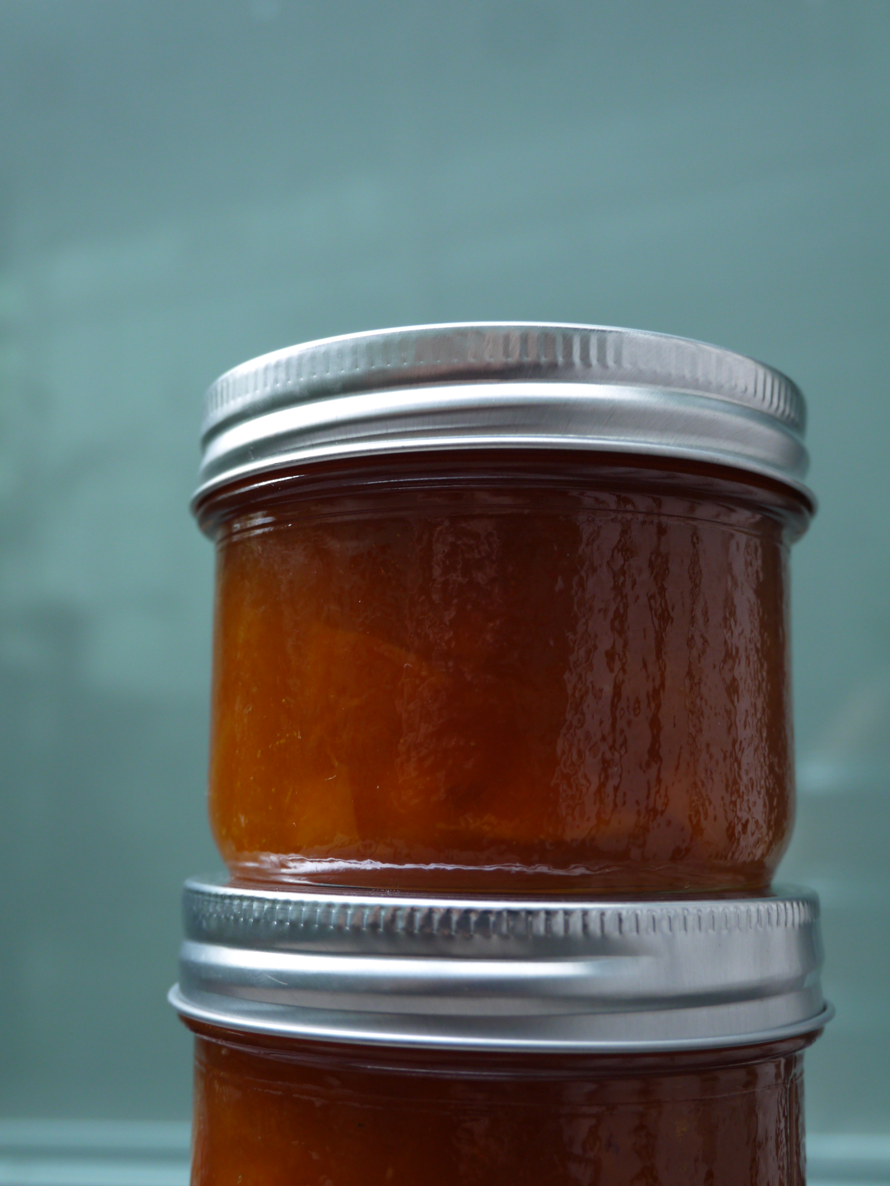 1. Chop the apricots up into small pieces and put them into a large pot with the sugar and citrus juices. Bring to a low boil and skim off any foam. Let it cook, stirring often, on a low simmer until the mixture has thickened. To test how thick your jam will be when it has cooled you can put a plate in the freezer. Just drop a little jam onto the icy plate and let it cool, then give it a push with your finger to see if it is thick enough. If not, just keep cooking it for longer.