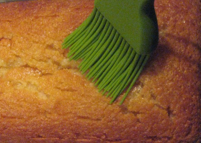 6. After the cake comes out of the oven, poke holes in it with the back end of a wooden spoon. Pour the sauce over the top.
