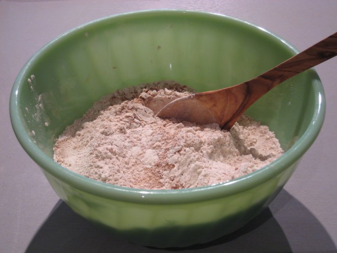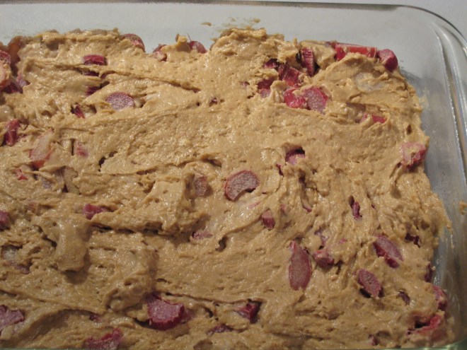 4. Pour the batter into parchment-lined pans(wax paper will do). I used two 4 by 12 pans, but that’s an odd size… so you can use two bread pans or, if you have it, one 10-inch tube pan. What ever you do, bake it for about an hour at 325 F, then test it with a toothpick. If it needs a little more time, add 10 minutes, check again, adding more time if needed.