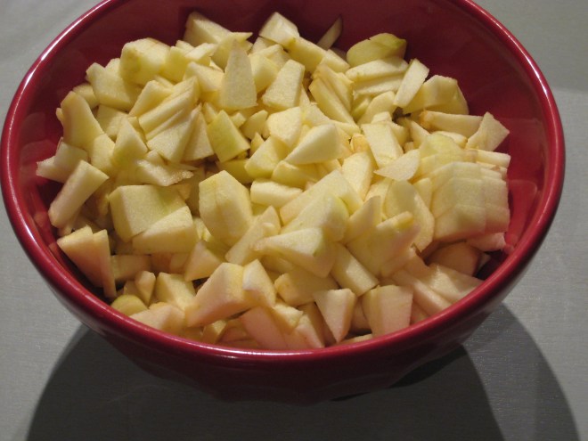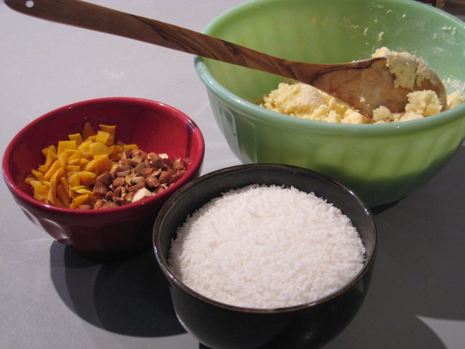 3. Add the coconut, apples and nuts and mix it. The batter will be quite thick.