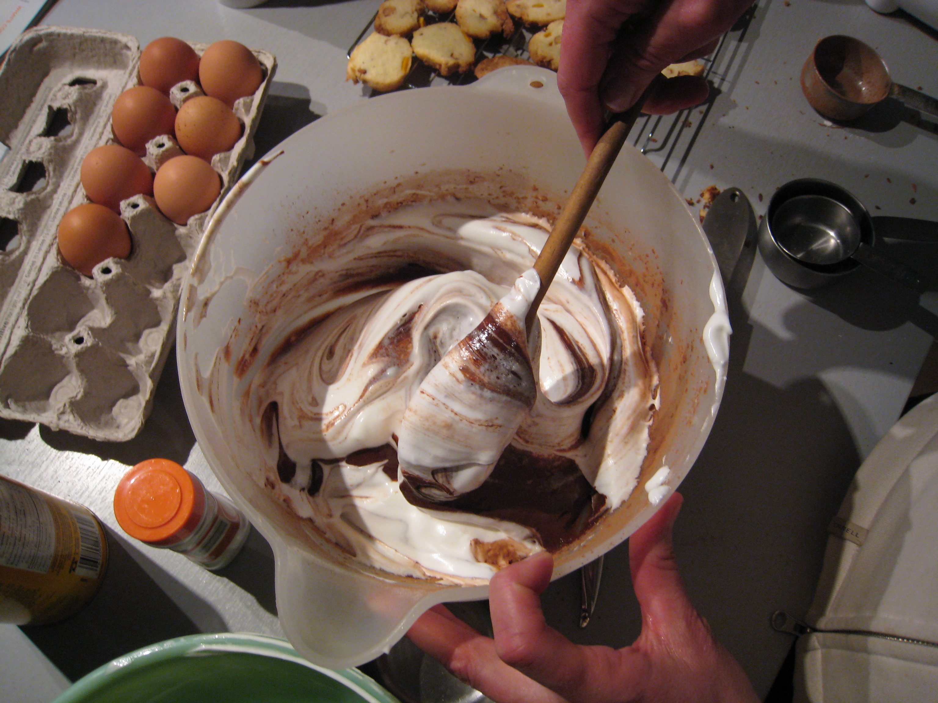 Feel free to use different proportions of chocolate. The original recipe didn’t specify which type of chocolate to use. I settled on some semi-sweet and some bittersweet, but depending on how sweet you like your desserts, you could use all of one, or half and half.