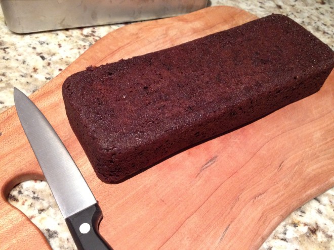 The cake is easy to make, and you get this perfect rectangle shape by putting another loaf pan on top and putting something heavy in it.