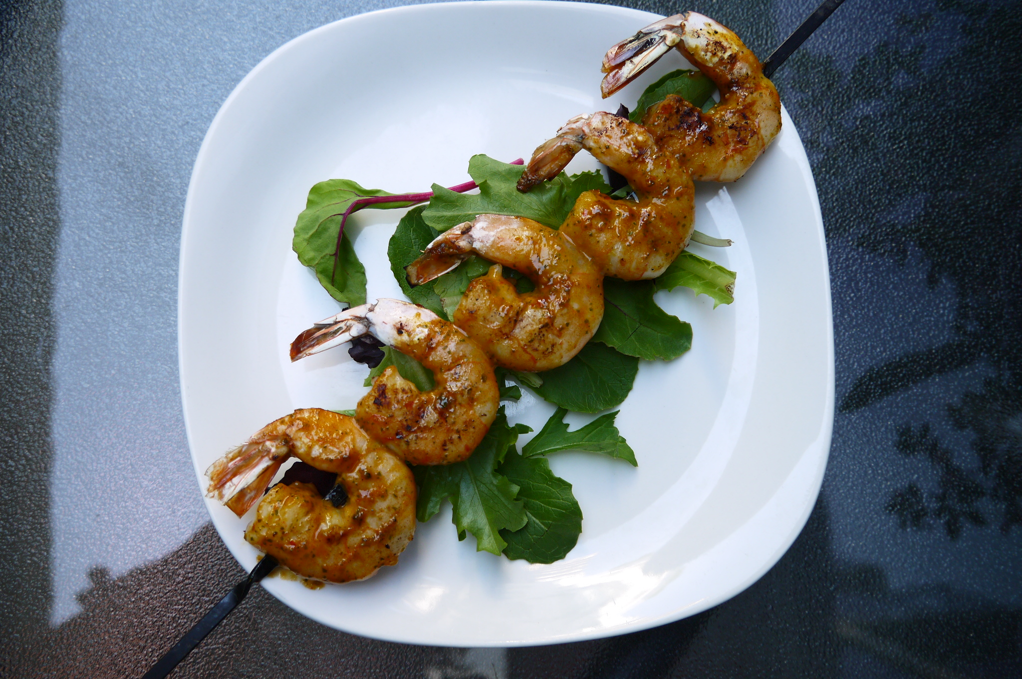 The guajillo chili salsa is a garlicky olive oil sauce with orange juice and cilantro – packed with flavour, which is just what tofu needs. I make up a recipe of the salsa and keep it in the fridge to use on various foods, including grilled chicken and shrimp. This time I served it on a bed of greens with grilled fresh zucchini. Another time I made it with spinach and my favourite dressing.