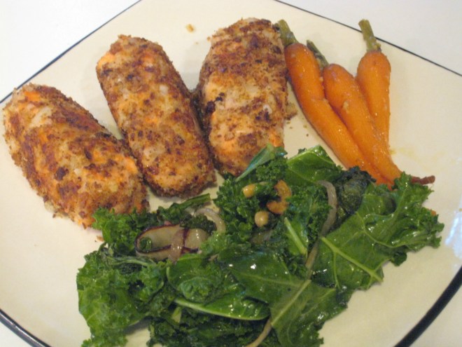 I served them with honeyed-ginger carrots and lemony kale with onions, garlic and pine nuts.