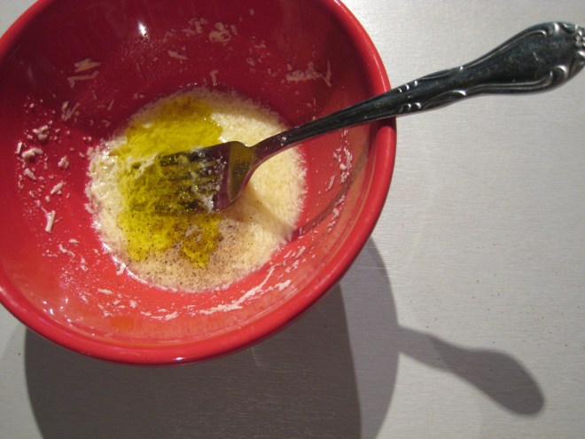 3. Pour in the olive oil, a little at a time, until it is combined.