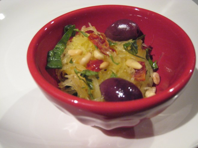 Roasted butternut squash, cauliflower and red onions with tahini sauce, za’atar and pine nuts: otherwise known as my new favourite meal. And it’s vegan and gluten-free, and it’ll make you feel good on a rainy fall evening – at least it did for me! And I’m really looking forward to my leftovers for lunch tomorrow. I got the idea for the recipe from a Yotam Ottolenghi recipe. I added the cauliflower because I think it is perfect with tahini sauce, and I changed the cooking method a bit, cooking the squash before cutting it, because it’s easier to cut when it’s soft. I also used my tahini recipe instead of his.