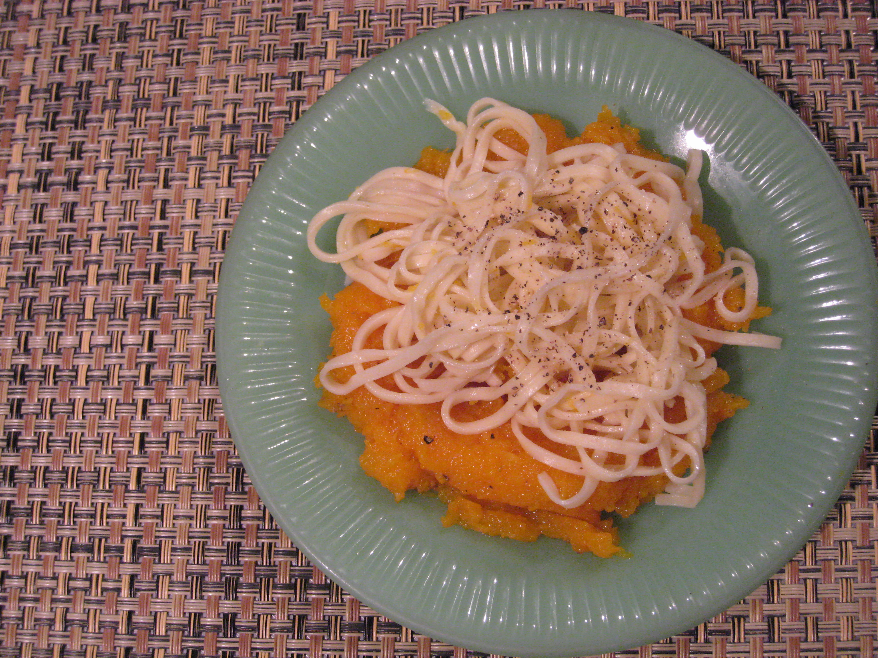7. Drain pasta, then plate it and drizzle a little olive oil on top (or a little butter) and some freshly cracked pepper and salt. Enjoy!